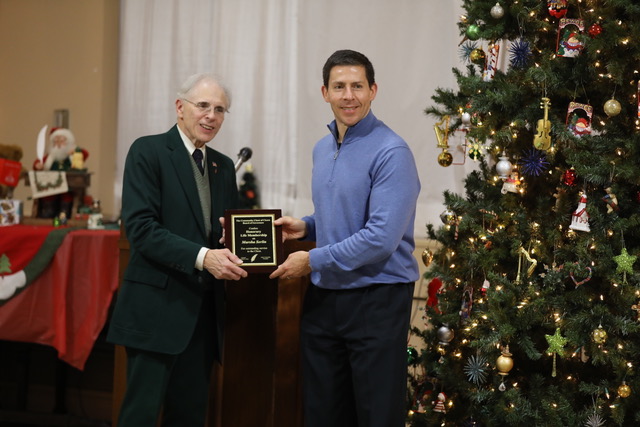 Brad Serlin accepts a plaque from John S. Kociolko on behalf of Marsha Serlin, recognizing her long service and contributions as a board member.