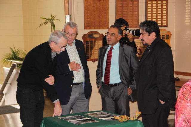 In discussion are Jim Haptonstahl, Executive Vice President of UCP Seguin, Bob Porod, Town Trustee, Victor Garcia, Town Trustee, and Frank Aguilar, Director, Community Affairs & Special Projects.
